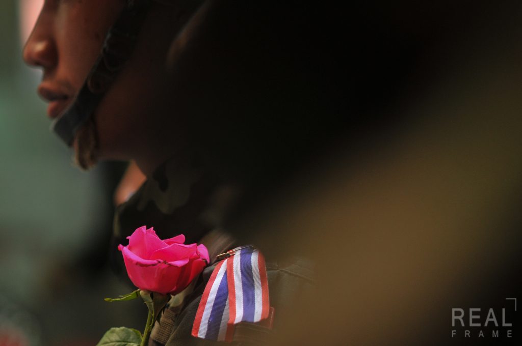 ผมหลบที่มุมตึก ท่ามกลางเสียงปืนและความชุลมุน ตื่นเต้น หวาดกลัว หลายความรู้สึกปะปนกับคำถามและภาพตรงหน้า ร่างไร้วิญญาณถูกอุ้มออกมา หมวกดับเพลงที่สวมใส่เต็มไปด้วยคราบเลือดสีแดง…