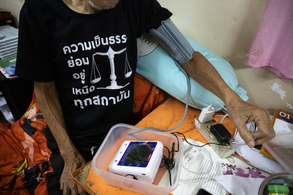 ตลอดระยะเวลาการต่อสู้คดี 112 ลุงบัณฑิตต้องเดินทางไปขึ้นศาลหลายครั้งแม้ว่าสภาพร่างกายจะไม่สมบูรณ์ มีอาการเหนื่อยง่ายจากโรคภูมิแพ้และความดันโลหิตสูง ขณะเดียวกันก็ต้องต่อสายปัสสาวะอยู่ตลอดเวลาเนื่องจากไตและกระเพาะปัสสาวะถูกตัดทิ้งเพราะเป็นมะเร็ง