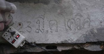 ตัวอักษรถูกเขียนไว้บนพื้นปูนหน้าทางเข้าร้านบุญเลิศบาร์เบอร์ ร้านตัดผมประจำชุมชนโรงหมูเขตคลองเตย เพื่อเป็นสัญลักษณ์ให้นึกถึงวันที่ถูกประกาศให้ปิดร้านเป็นครั้งแรกในรอบ 40 กว่าปี