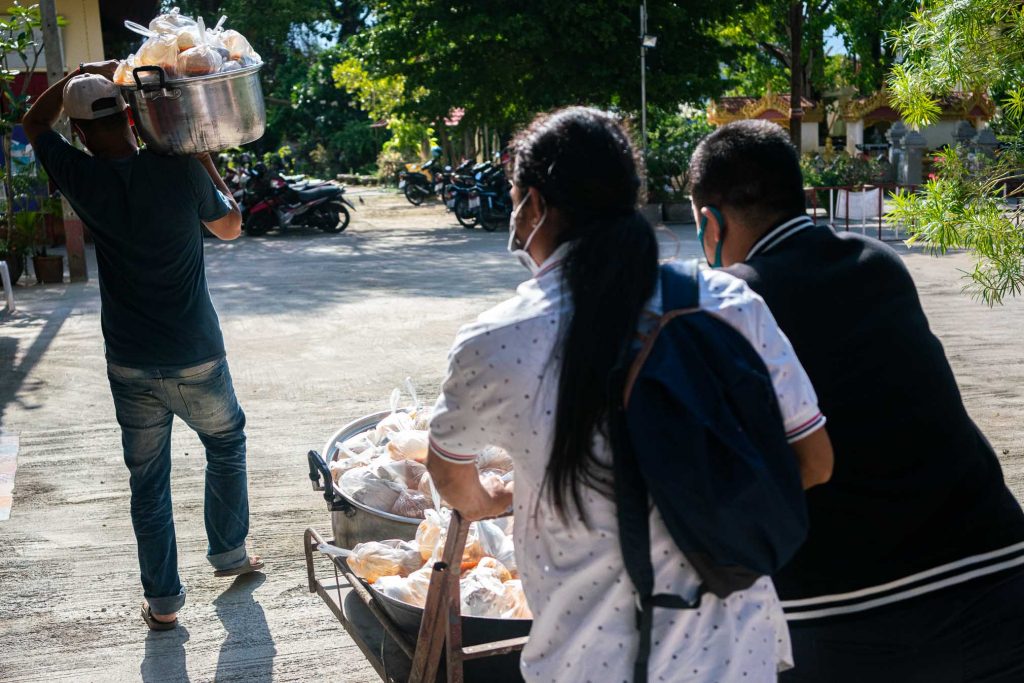 โมโมเอ อยู่อาศัยในประเทศไทยตั้งแต่อายุ 17 ปีเพราะต้องการแสวงหาอนาคตใหม่ ๆ ในประเทศไทย ที่ในขณะนั้นเธอมองว่าหาไม่ได้ในเมืองมิตจินารัฐคะฉิ่นบ้านเกิด แม้จะผ่านหลากหลายฤดูกาลในประเทศไทย เธอก็ยังมองว่าครั้งนี้เป็นครั้งที่ลำบากที่สุดอาจจะเป็นเพราะว่าไม่ได้มีเพียงเธอแค่คนเดียวอีกต่อไปแต่ยังมีสามีและลูกอีก 2 คนในวัยประถมที่กำลังเข้าโรงเรียน ความเครียดและการต้องอยู่เฉย ๆ กลับกลายเป็นแรงพลักดันที่ทำให้เธอมาเข้าร่วมกับเพื่อน ๆ กลุ่มแรงงานข้ามชาติเพื่อช่วยเหลือผู้คนที่เธอบอกว่าลำบากกว่าเธอในช่วงนี้ “มาช่วยอยู่ที่นี่ก็ดี จะได้ไม่ต้องฟุ้งซ่าน กลับบ้านไปเครียดเรื่องไม่มีงานทำ” เธอย้ำ