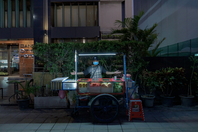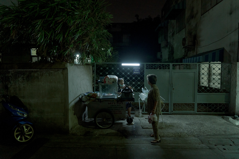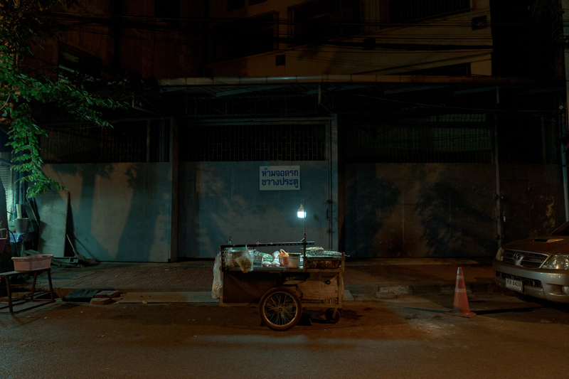 รถเข็นเหล่านี้จึงเป็นแหล่งพลังงานเล็ก ๆ ที่คอยเคลื่อนตัว ฃไปอย่างเชื่องช้าในค่ำคืนของกรุงเทพมหานคร