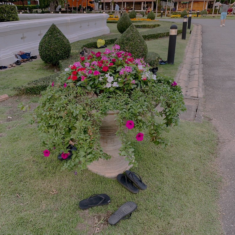 รองเท้า ของกิน เสื้อกันหนาว คือสิ่งของบางส่วนที่ถูกวางอยู่ตามพื้นหญ้าหรือห้อยแขวนอยู่บริเวณต้นไม้ในสวนราชพฤกษ์ จังหวัดเชียงใหม่ ของบรรดานางรำกว่า 1899 คน ที่มาตอนรับเสด็จของพระบาทสมเด็จพระเจ้าอยู่หัวรัชกาลที่ 10 ท่ามกลางอุณภูมิ 18 องศาช่วงยามเย็นของ จ.เชียงใหม่ ทั้งหมดได้เดินทางมาจากหลากหลายหมู่บ้านในจังหวัดเชียงใหม่ตั้งแต่ช่วงบ่าย เพื่อจะมารอรำถวายตอนรับในช่วงเวลาประมาณ 19:00 นาฬิกา สิ่งของธรรมดาที่ชาวบ้านพกพามาถูกเจ้าหน้่าที่ขอความร่วมมือให้เอาหลบออกให้จากสายตา ด้วยเหตุผลที่ว่า “รบกวนสายพระเนตร”