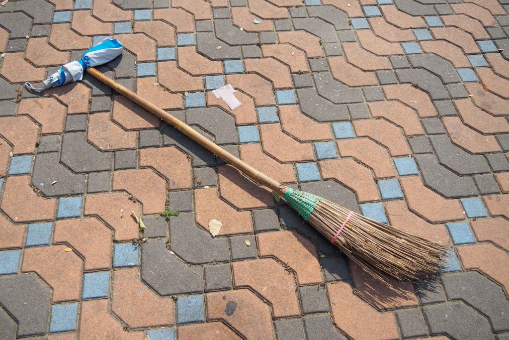 ไม้กวาดก้านมะพร้าวของป้าแม่บ้าน