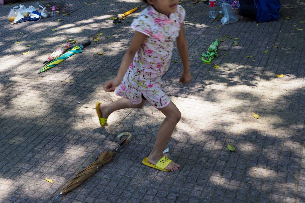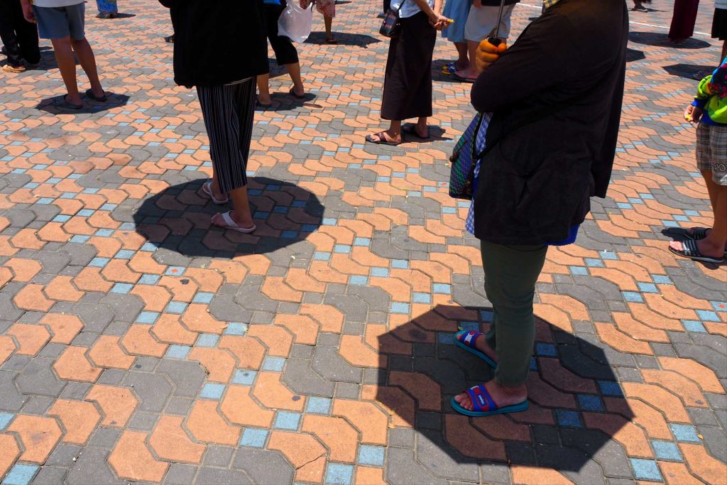 แดดเปรี้ยง พระอาทิตย์ตรงหัว เขาและเธอยืนล้อมรอบลานเอนกประสงค์หน้าที่ว่าการอำเภอ