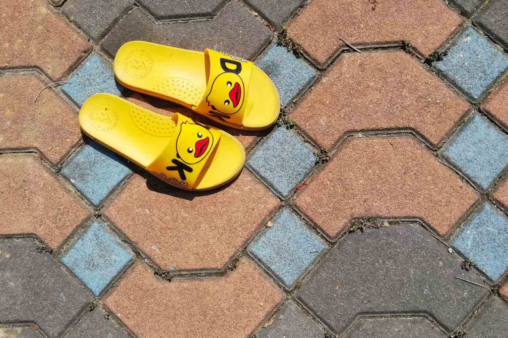 รองเท้าลายเป็ดสีเหลืองของสาวแรกรุ่น